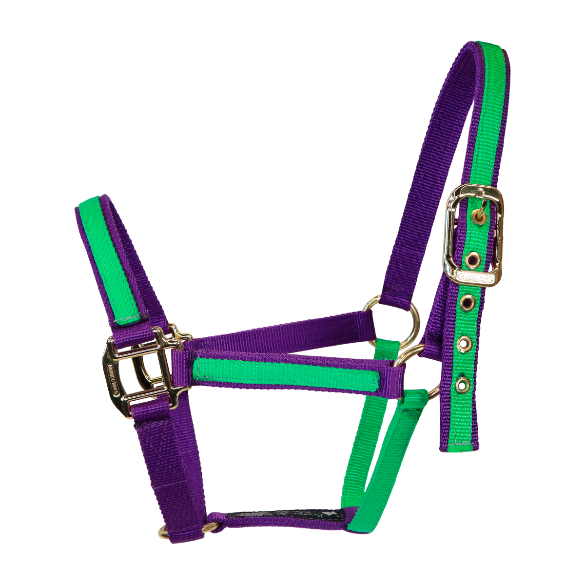 Construido para durar, este almartigón está fabricado con nylon doble y una llamativa capa de bloque de color, que añade un toque de estilo. Su herraje satinado duradero incorpora hebillas de rodillos para ajustes fáciles, y un broche en la garganta que permite ponerlo y quitarlo de manera rápida y eficiente.