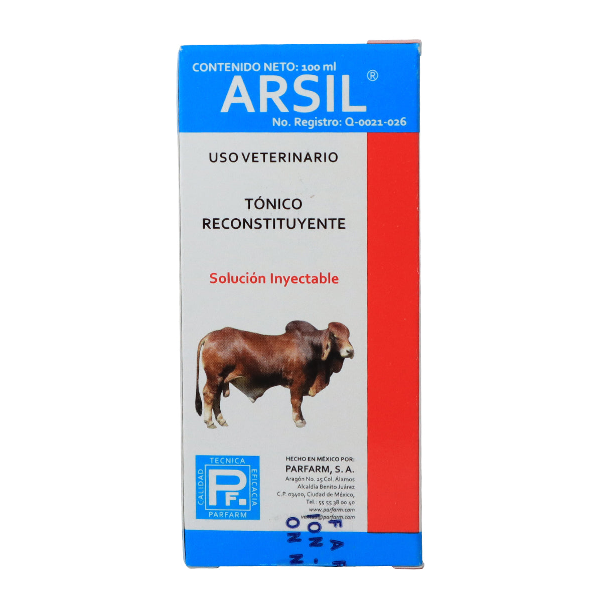 Arsil Tónico Reconstituyente es una solución inyectable de uso veterinario diseñada para tratar y prevenir anemia, debilidad, agotamiento, y alteraciones por nutrición inadecuada. También es útil en casos de caquexia consecutiva a enfermedades, enflaquecimiento en animales jóvenes, retraso en la muda del pelo, y como estimulante del metabolismo en casos de paresias y atrofias musculares. Además, fomenta la calcificación de fracturas y es coadyuvante en el tratamiento de enfermedades de la piel, catarros gástricos, intestinales crónicos, y catarro bronquial crónico en caballos.