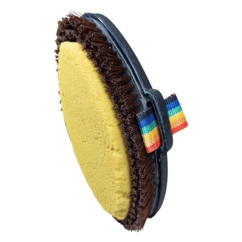 El Cepillo para Caballo Blando con Esponja es un accesorio práctico y versátil para el aseo diario del equino. Combina cerdas suaves de plástico que eliminan polvo y suciedad ligera con una esponja integrada que permite aplicar productos de limpieza o acabado, brindando una experiencia de cepillado cómoda y eficaz. Gracias a su asa de sujeción, ofrece un mejor agarre y control durante el uso, incluso en caballos nerviosos o inquietos.