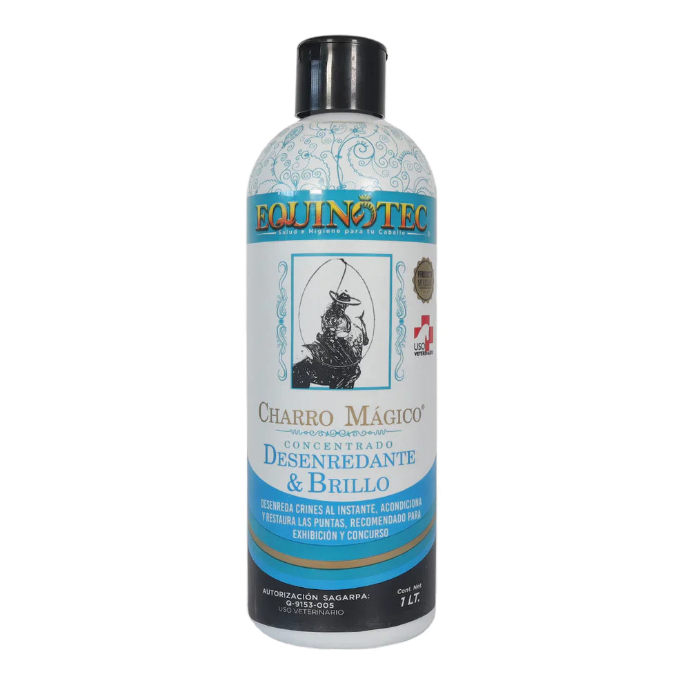 El Shampoo Charro Mágico es la solución ideal para mantener el pelaje de tu caballo en óptimas condiciones. Su fórmula especial no solo desenreda crines y colas al instante, sino que también proporciona un brillo suave y sedoso que realza la belleza natural del caballo. Este producto destaca por acondicionar y reparar las puntas, previniendo la fragilidad del cabello para un pelaje fuerte y saludable.