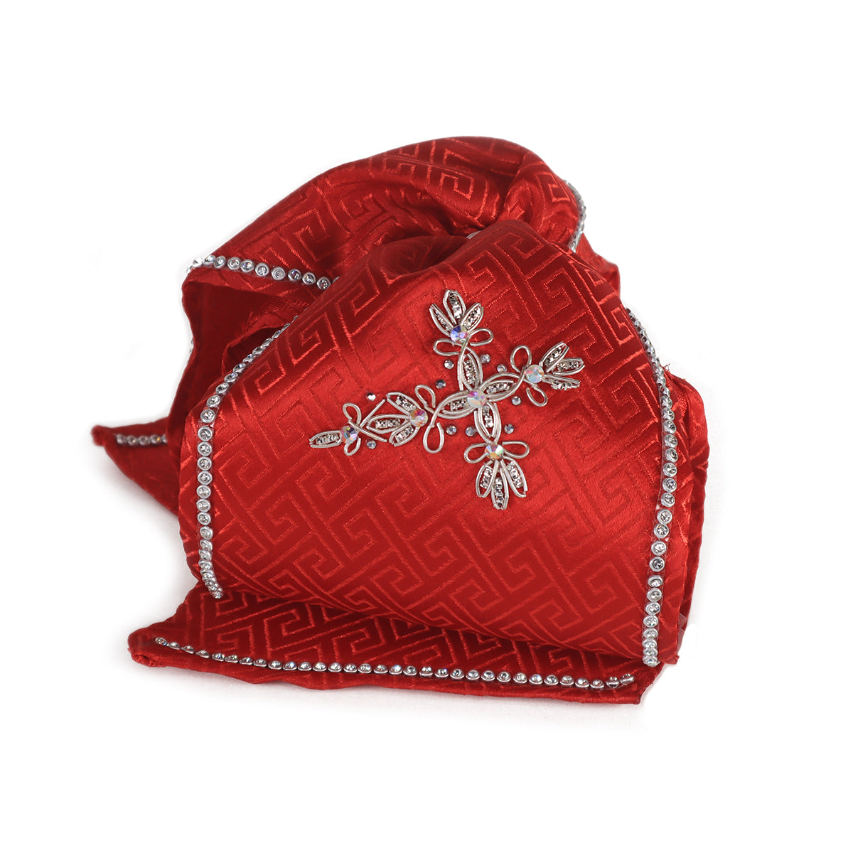La Corbata Charra Indumentaria bordado Cruz es perfecta para complementar tu atuendo de forma elegante y tradicional. Su diseño bordado de Cruz en color Rojo y Plata le da un toque único y distintivo. Hecha con materiales de alta calidad, esta corbata te brindará comodidad y estilo en cualquier ocasión.