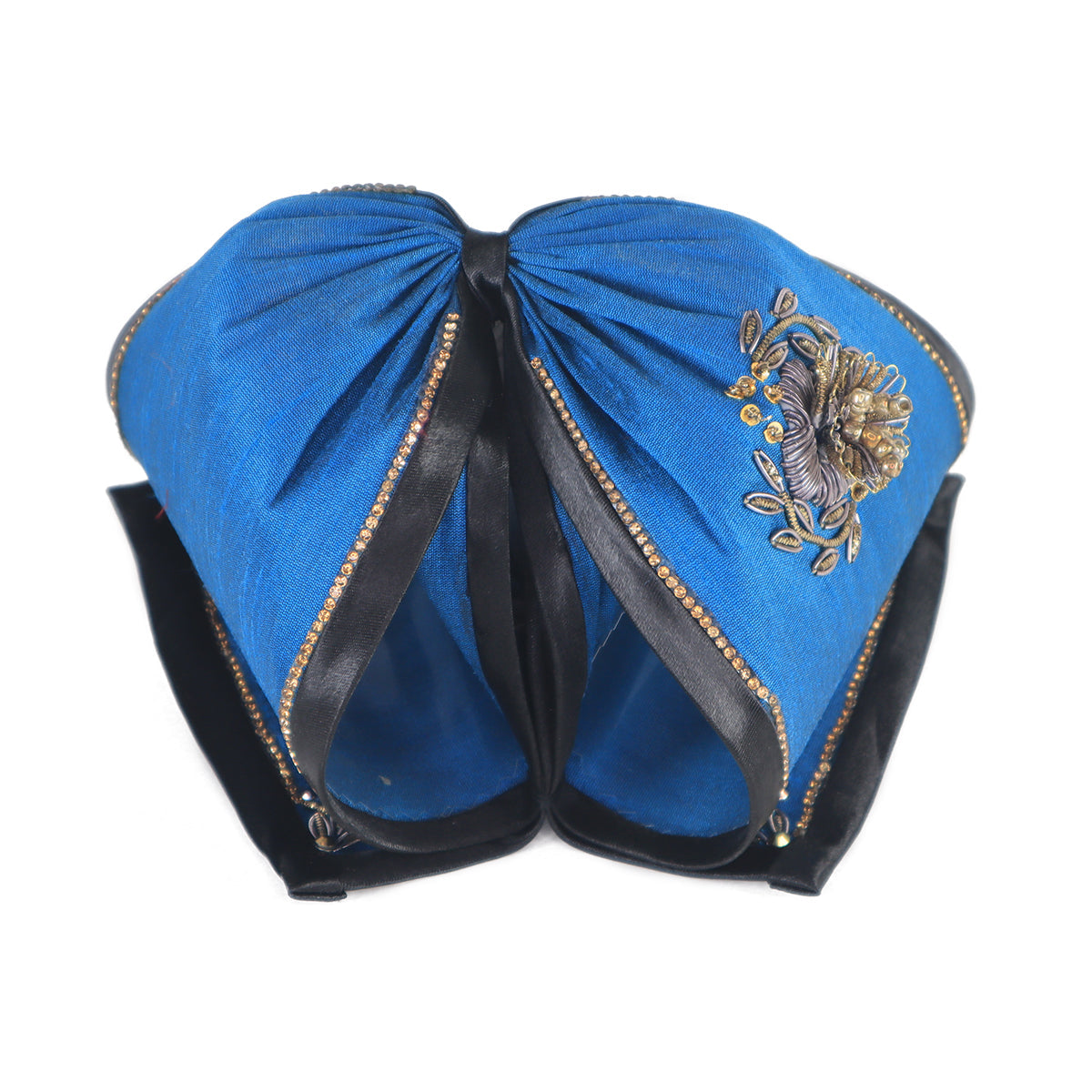 Corbata Charra bordado flor color Azul con Negro