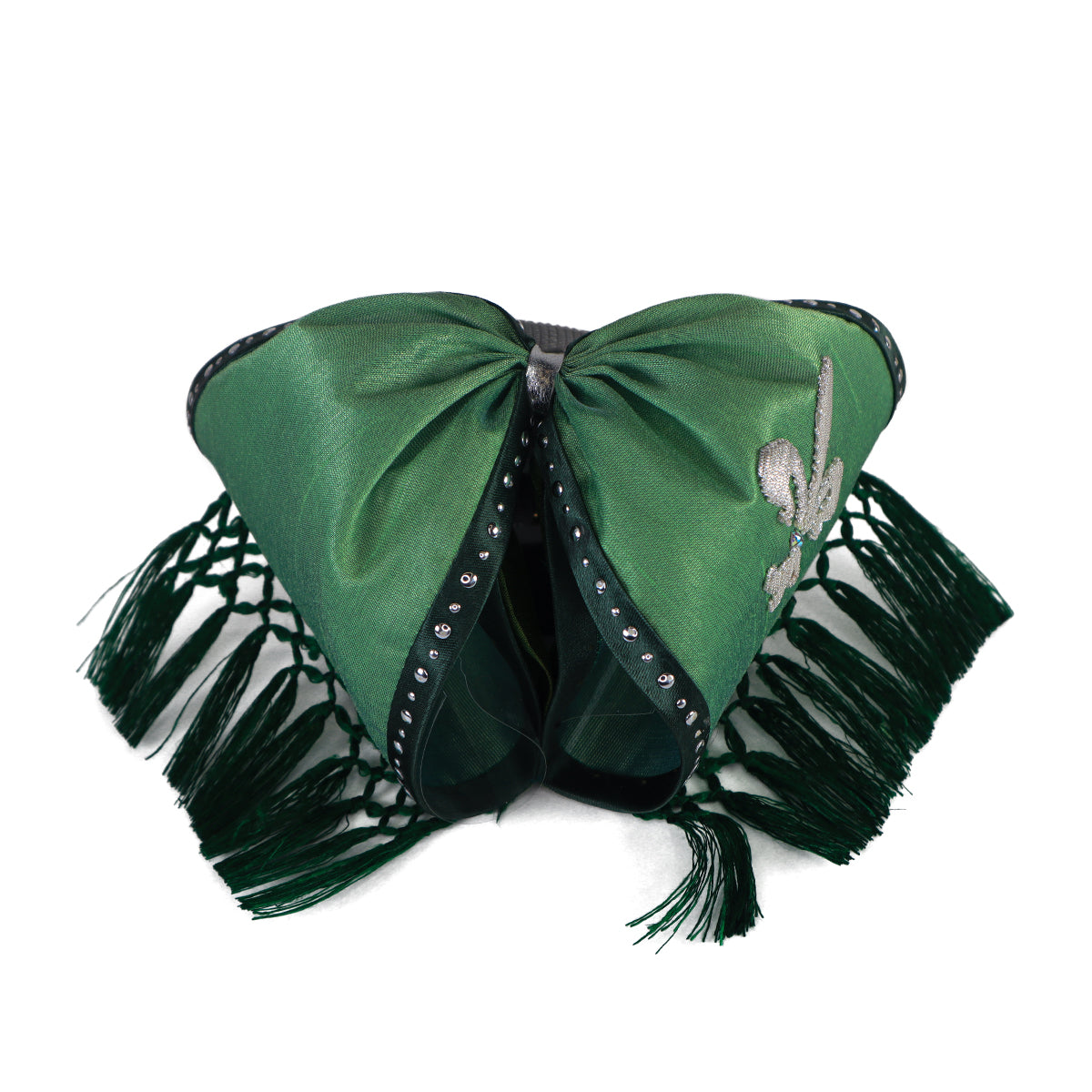 Descubre la elegancia de la Corbata Charra Indumentaria en color Verde Olivo con una hermosa flor de plata. Su forma de mariposa y detalles bordados la hacen única y perfecta para resaltar tu estilo en cualquier ocasión. Disfruta de su gran calidad y diseño exclusivo.