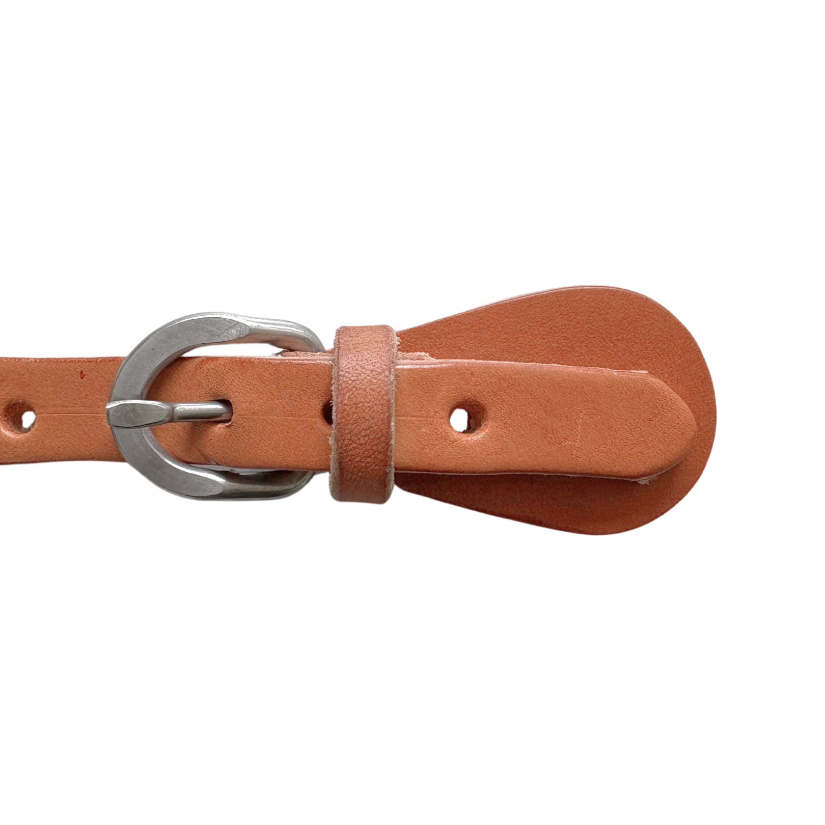 El Correón Lizo Texano es un accesorio clásico diseñado para espuelas vaqueras, con un diseño limpio y funcional que garantiza un ajuste cómodo y seguro. Fabricado con materiales de alta calidad, es ideal para el uso rudo y cotidiano, manteniendo un estilo tradicional y elegante.