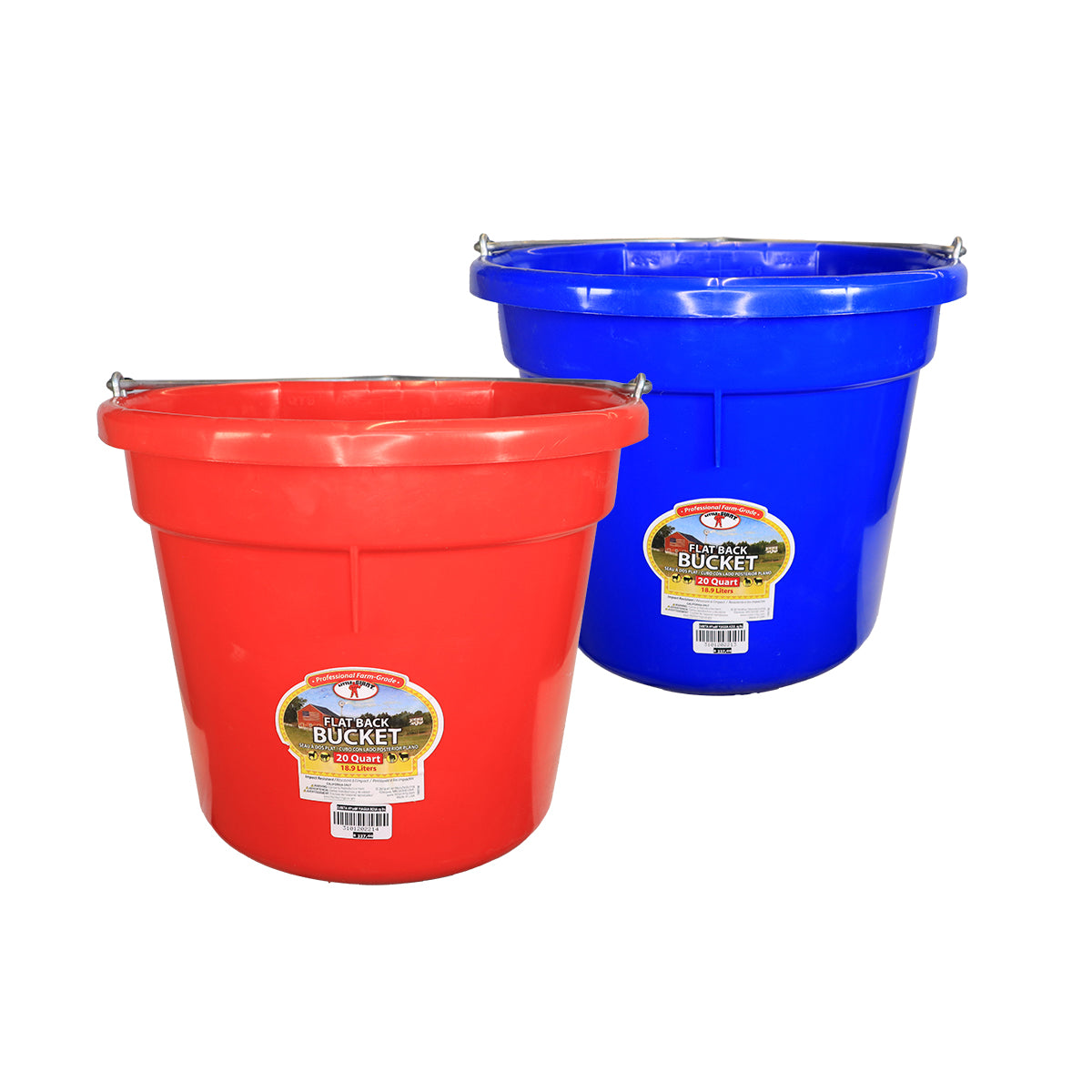 Esta cubeta de plástico para agua es ideal para granjas y ranchos, con una capacidad de 19 litros. Su diseño Flat-Backpermite colgarla de manera compacta en una pared o cerca, facilitando también el transporte de cargas pesadas.