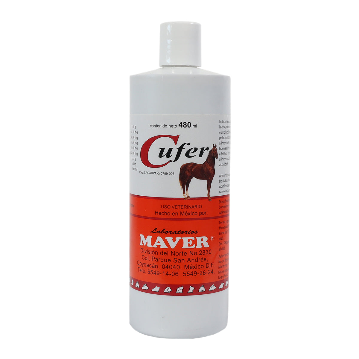 Cufer es una suspensión de alta palatabilidad que combina vitaminas y minerales esenciales como cobre, hierro y vitaminas del complejo B. Está diseñado para mejorar la oxigenación muscular y estimular el apetito en animales en desarrollo o con alta actividad física.