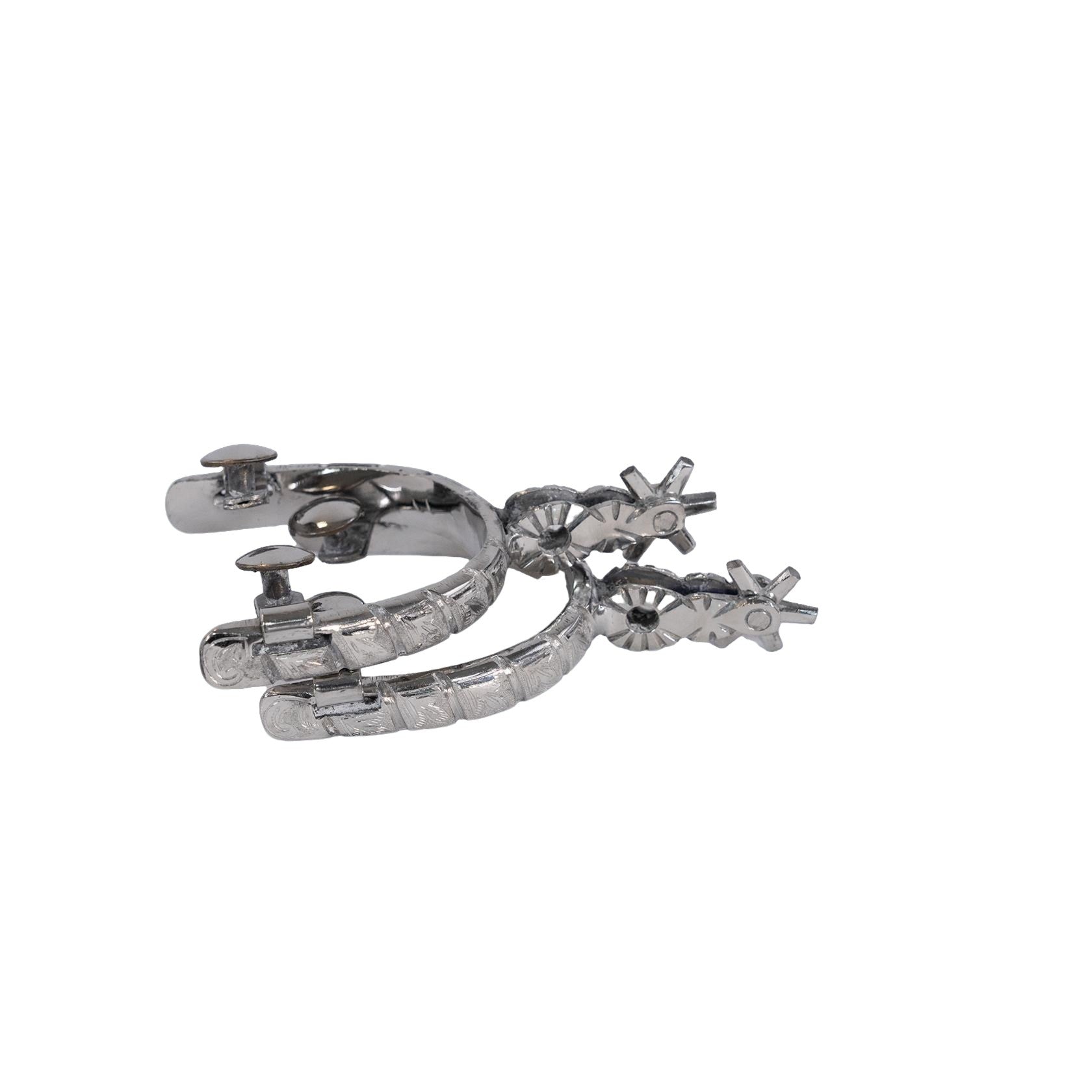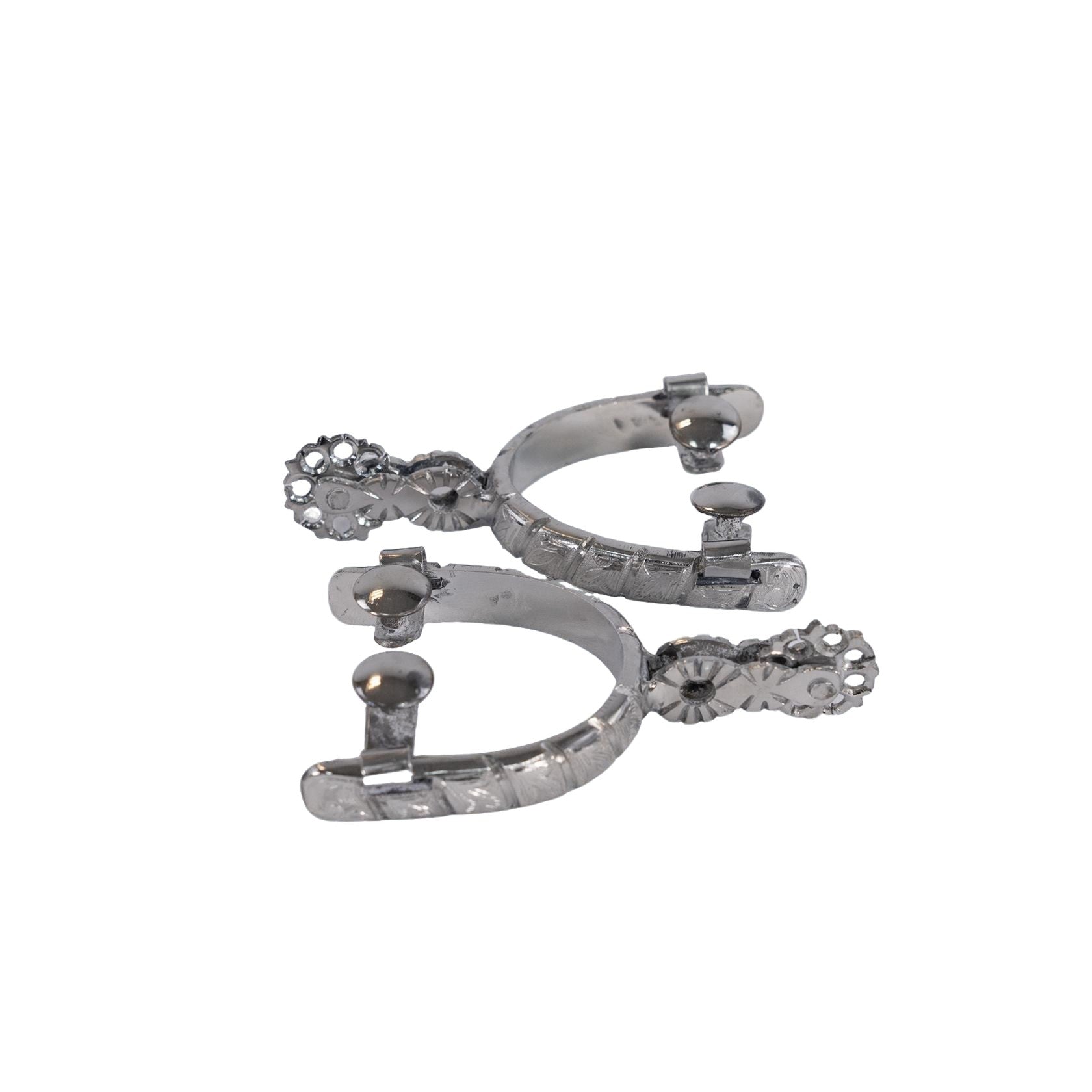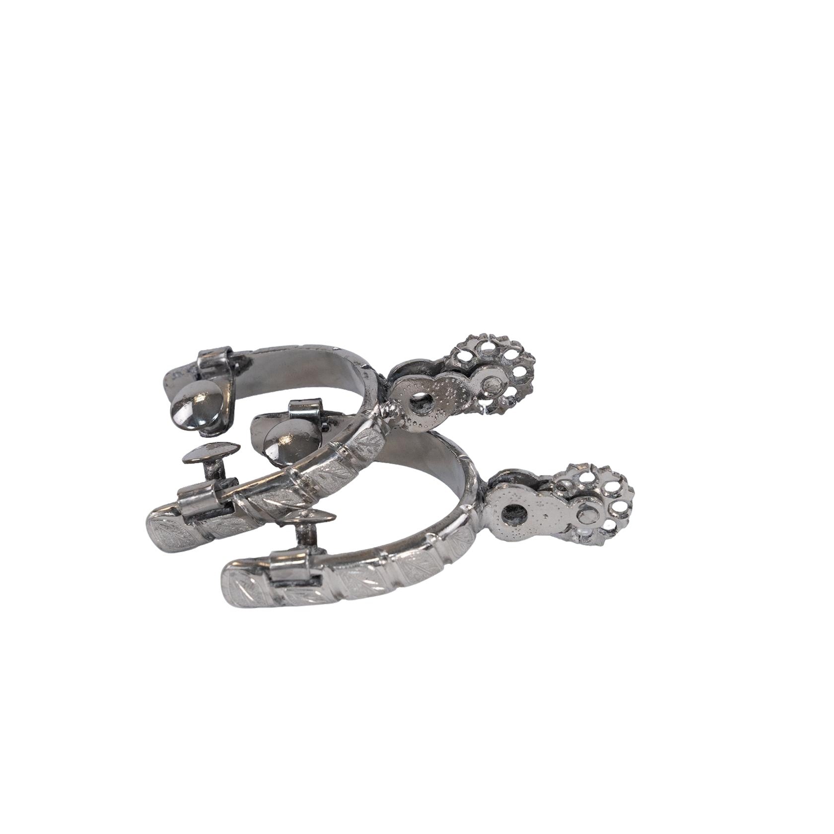 La Espuela Gajo con Rodaja de Picos es una herramienta esencial para los jinetes que buscan un mayor control y precisión en su equitación. Equipadas con rodajas de picos, estas espuelas proporcionan una acción firme y efectiva, ideal para situaciones donde se requiere una respuesta rápida y precisa del caballo.