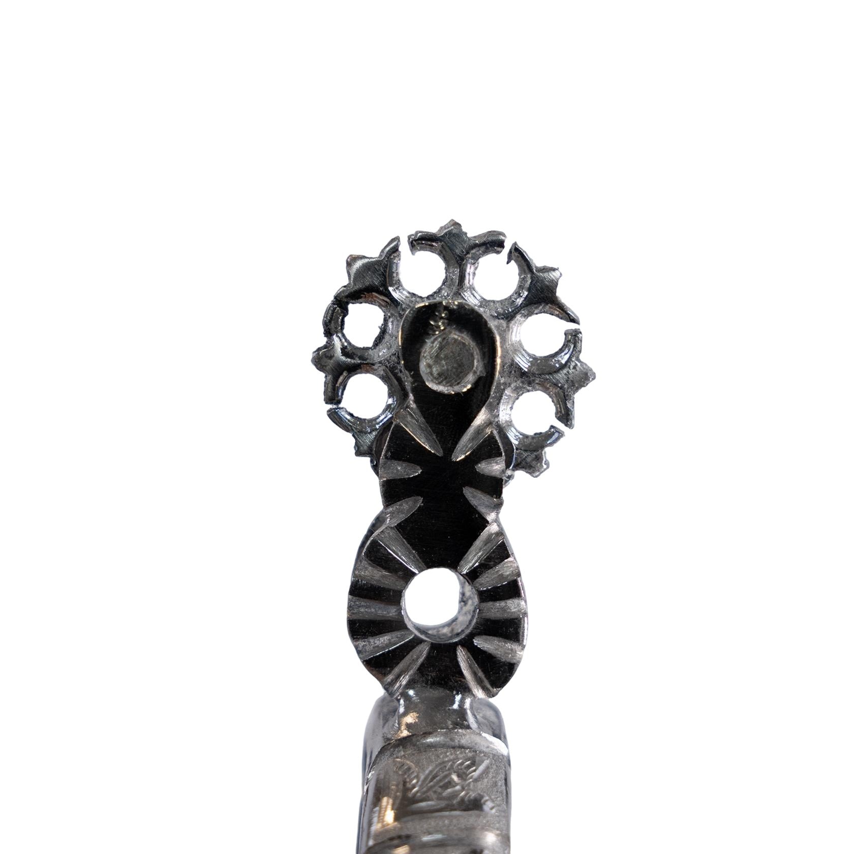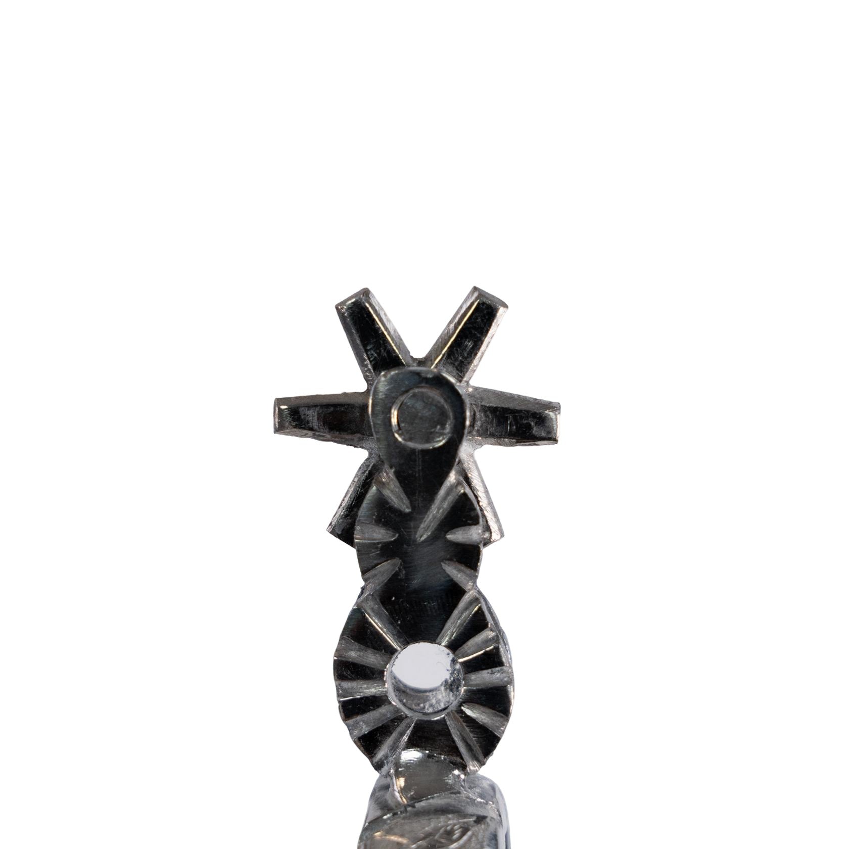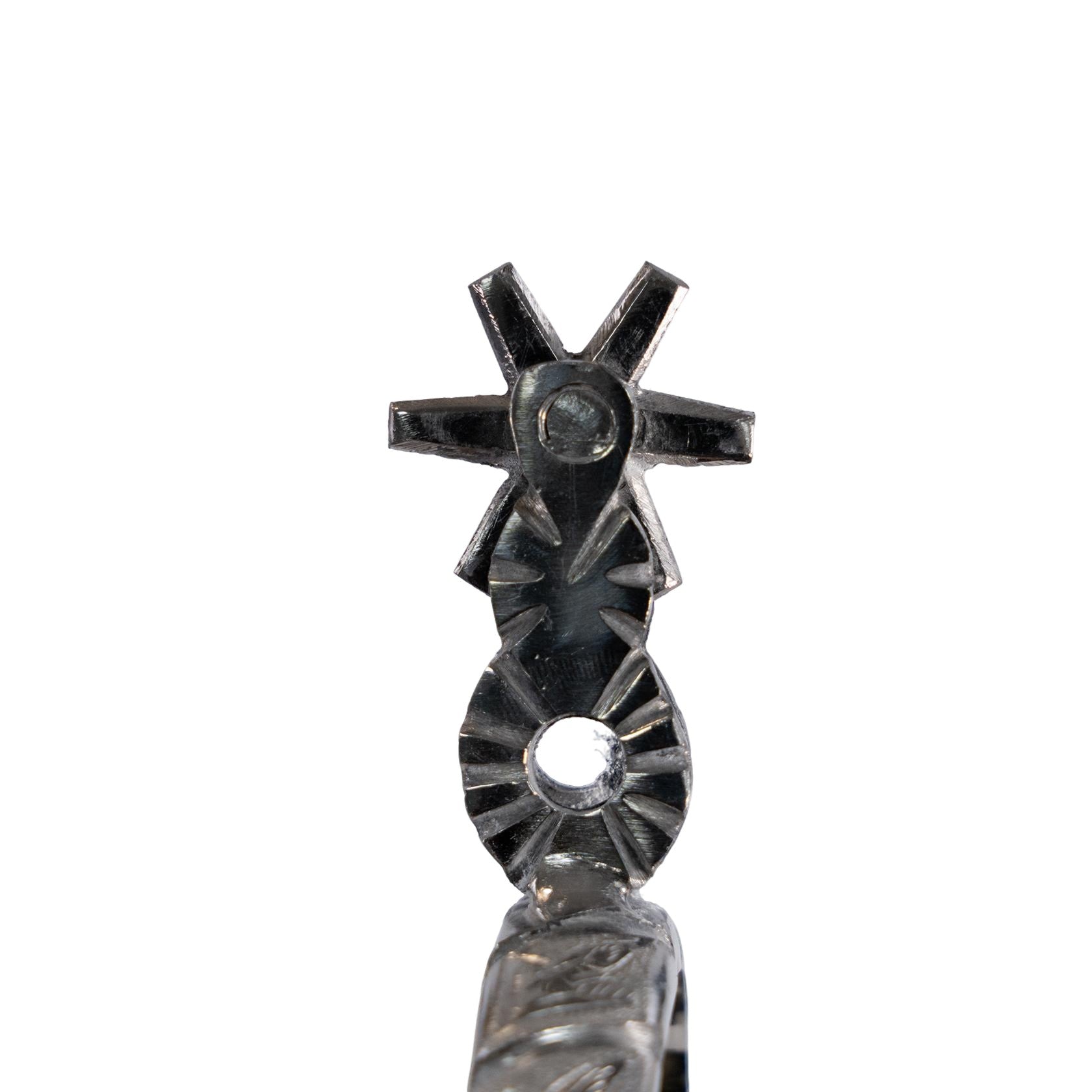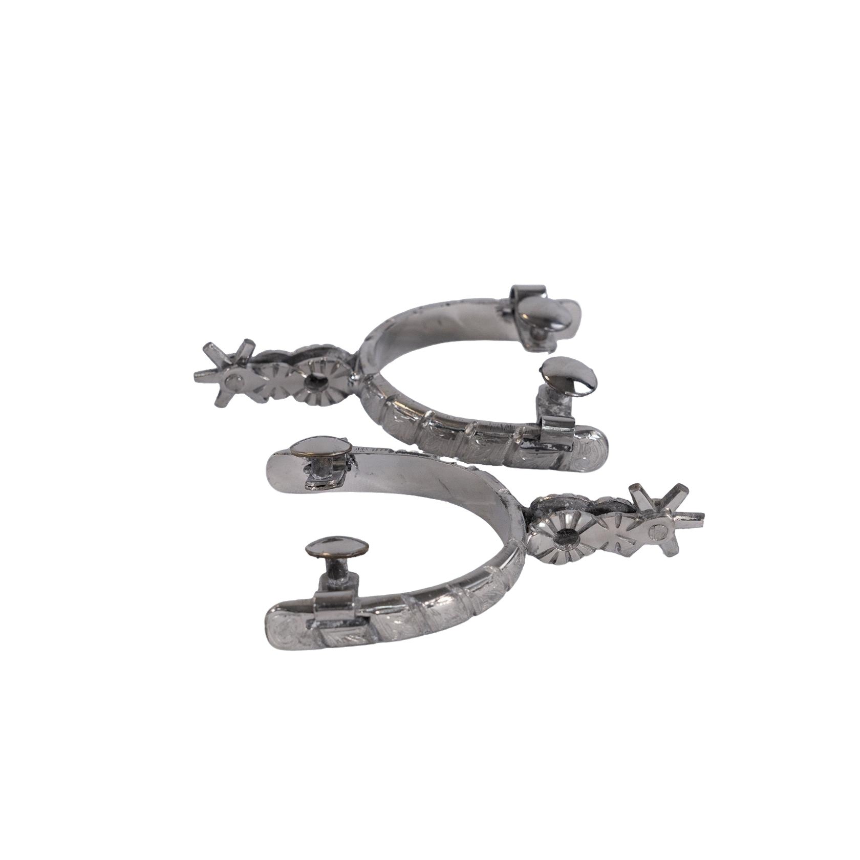 La Espuela Gajo con Rodaja de Picos es una herramienta esencial para los jinetes que buscan un mayor control y precisión en su equitación. Equipadas con rodajas de picos, estas espuelas proporcionan una acción firme y efectiva, ideal para situaciones donde se requiere una respuesta rápida y precisa del caballo.