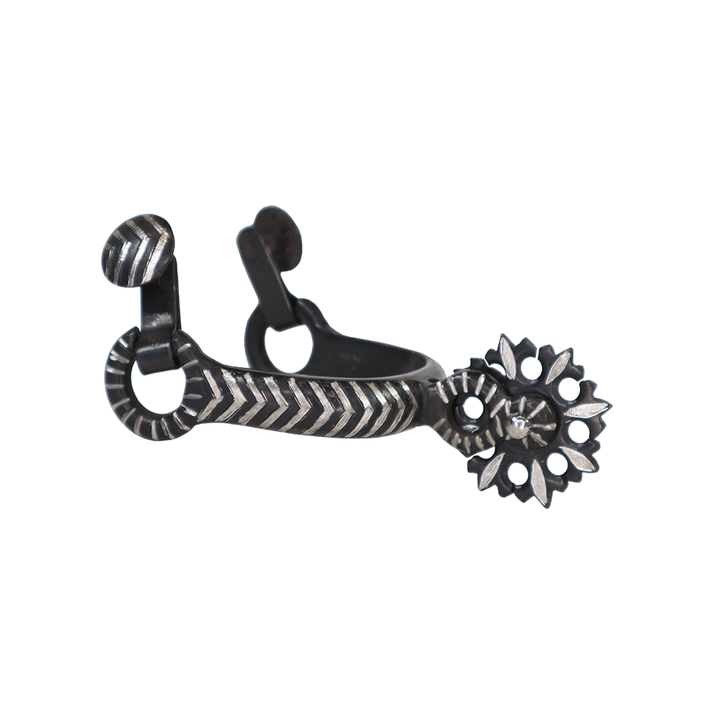 Mejore su equitación con la espuela para caballo de metal Pavonada Realce. Hecha de metal pavonado, esta espuela es resistente y duradera para un rendimiento óptimo en la pista. Añada un toque elegante a su montura con el realce en el diseño de la espuela. Disfrute de una equitación más precisa y controlada con este accesorio de calidad.