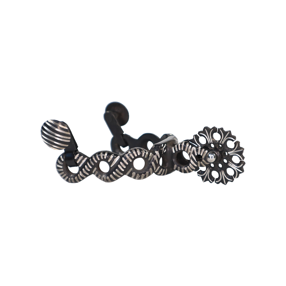 Esta espuela de metal pavonada es perfecta para los amantes de la equitación. Con un diseño de víbora única, proporciona un toque elegante y funcional para montar a caballo. Hecha de material resistente, esta espuela te ayudará a controlar tu caballo con mayor precisión y comodidad. ¡Experimenta una experiencia de equitación mejorada con esta espuela de metal de alta calidad!