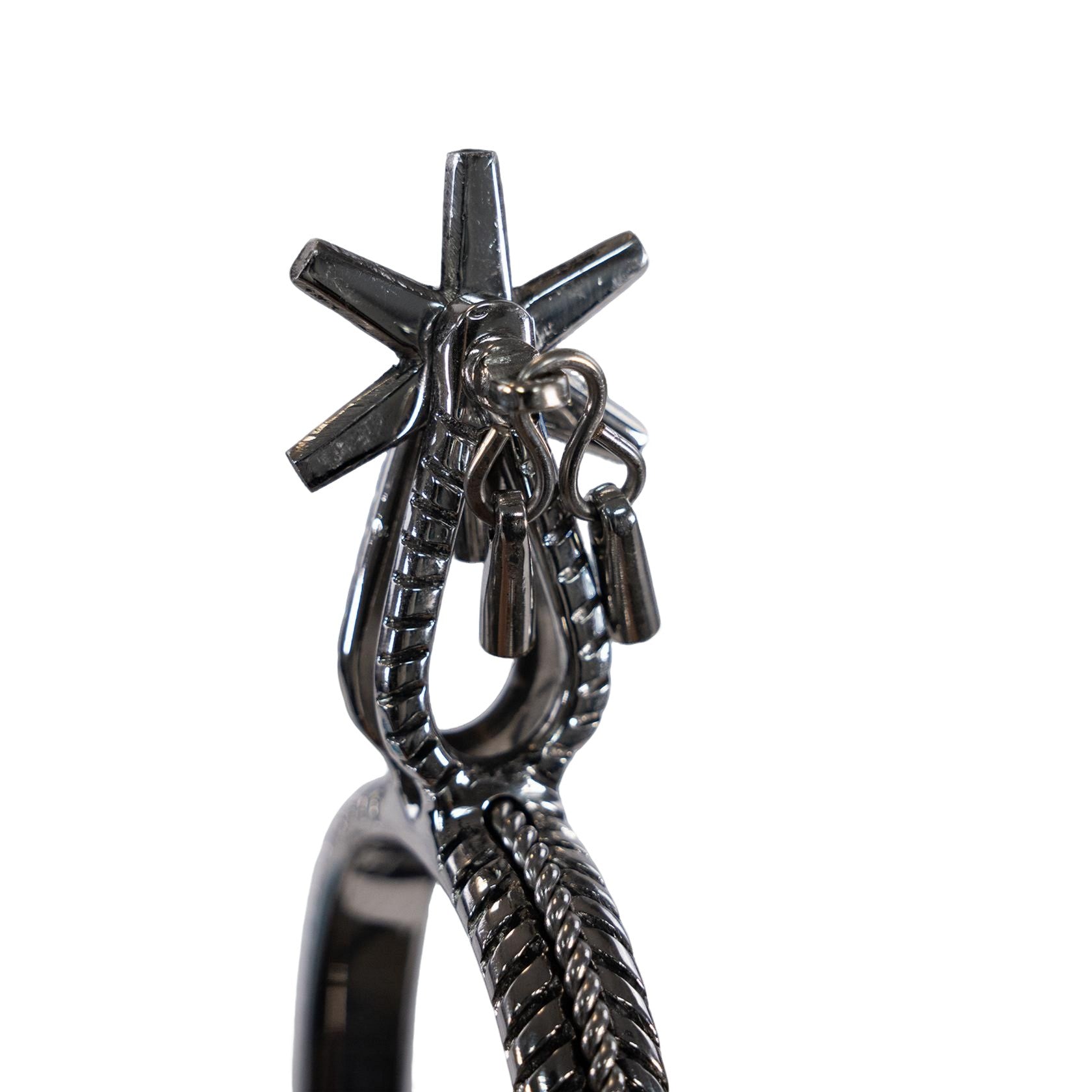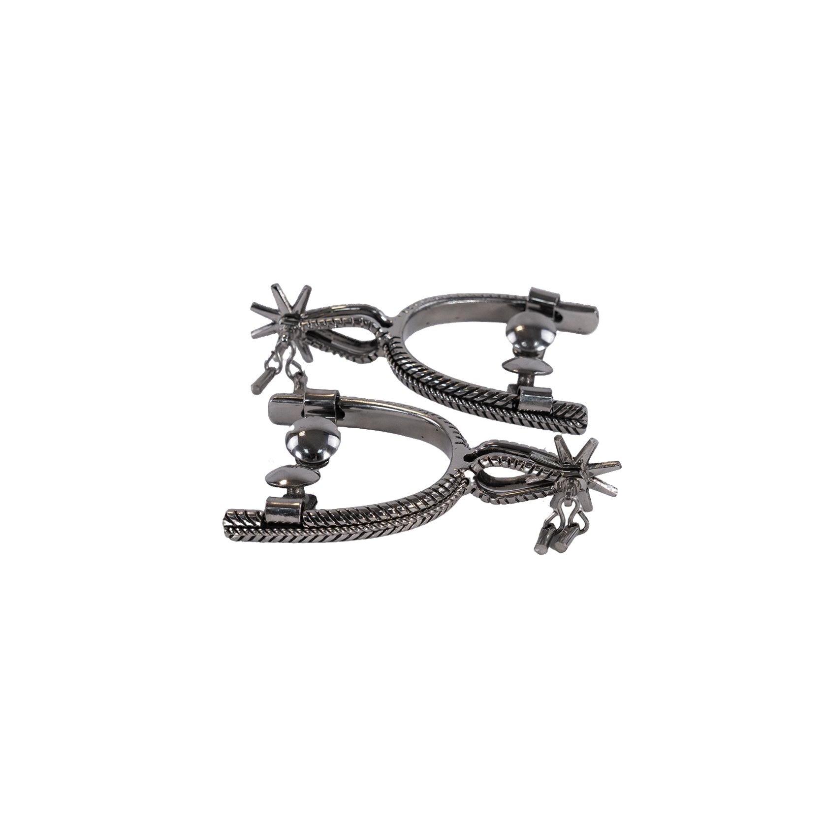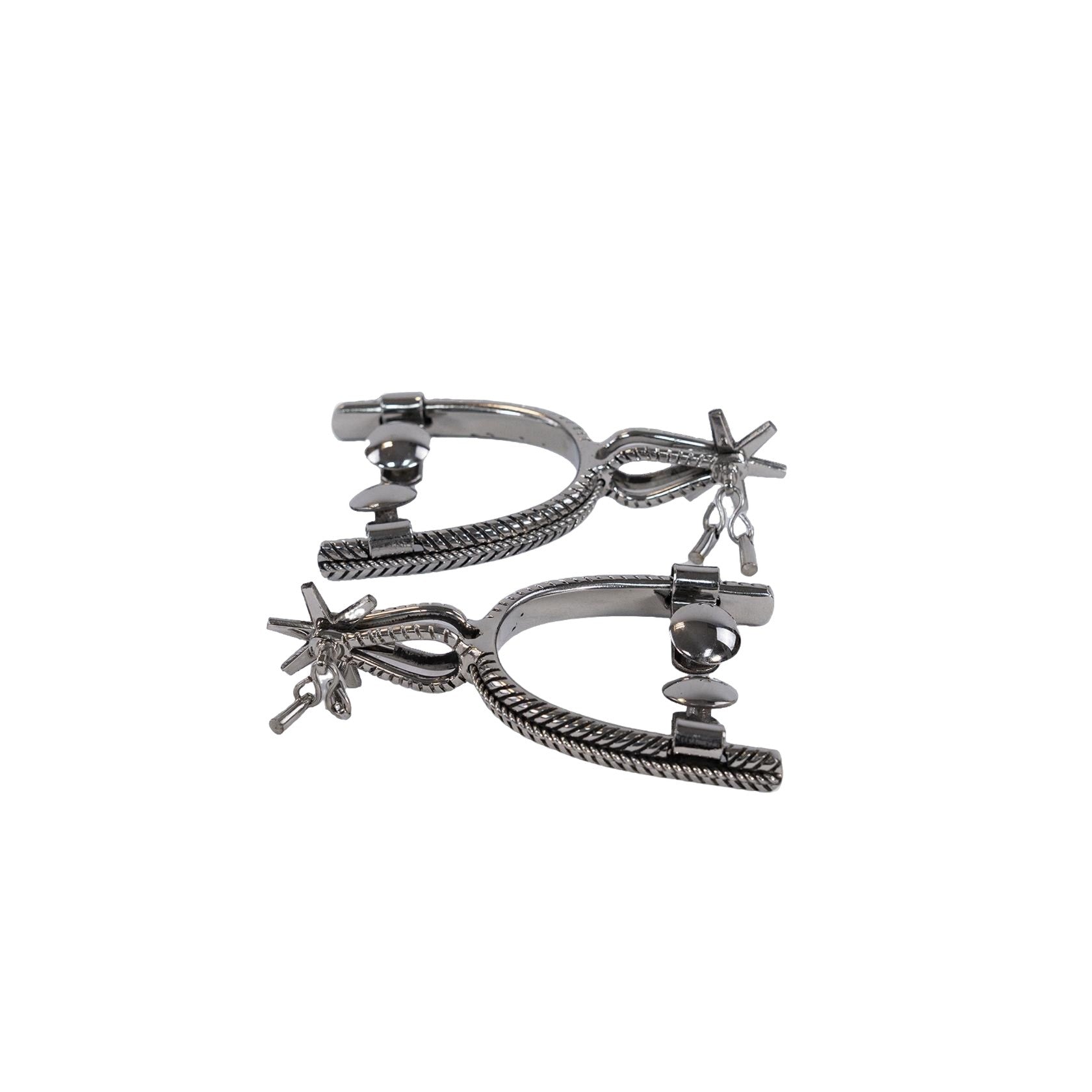 La Espuela Torzalito con Arete combina elegancia y funcionalidad en un diseño clásico y detallado. Fabricada con materiales de alta calidad, su característico torzal le da una apariencia distintiva y su arete complementa el estilo tradicional charro. Esta espuela ofrece resistencia y precisión para un control efectivo durante la monta, siendo ideal para competencias o prácticas diarias. Su diseño artesanal no solo aporta durabilidad, sino que también refleja el auténtico arte de la talabartería mexicana.