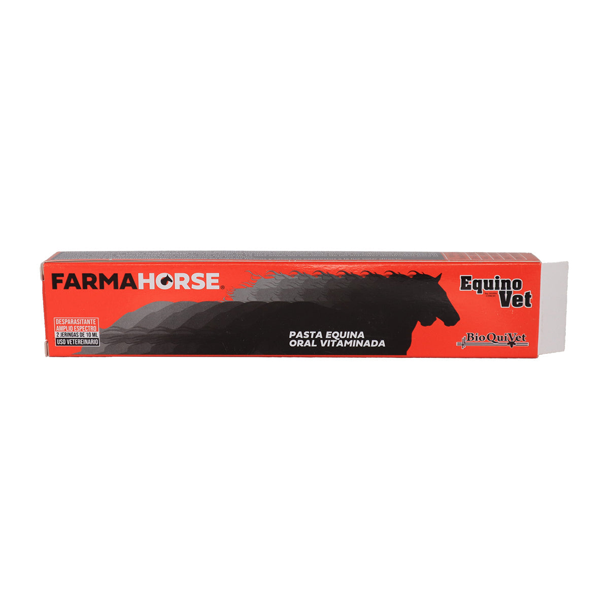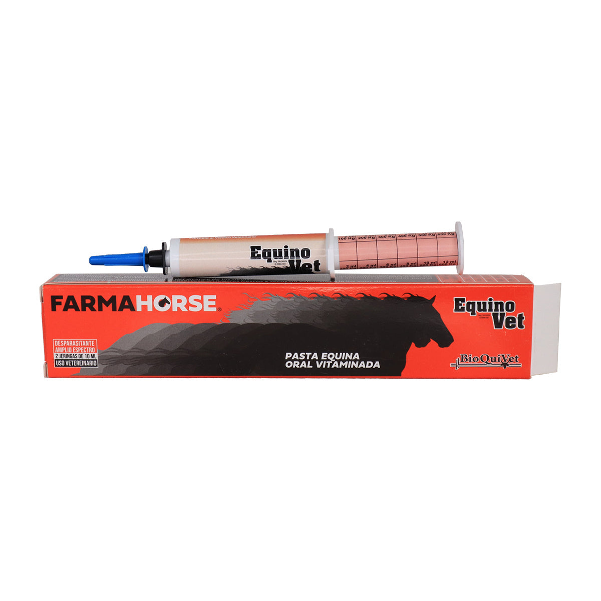 Equino Vet es una pasta oral vitaminada, indicada para el control y tratamiento de parasitosis gastrointestinales, pulmonares, así como para el control de piojos, ácaros de la sarna y larvas de moscas que afectan a caballos, burros y mulas. Combina la acción antiparasitaria de la Ivermectina y Fenbendazol, y las propiedades vitamínicas de la Vitamina A, D3 y E, contribuyendo al bienestar general del animal.