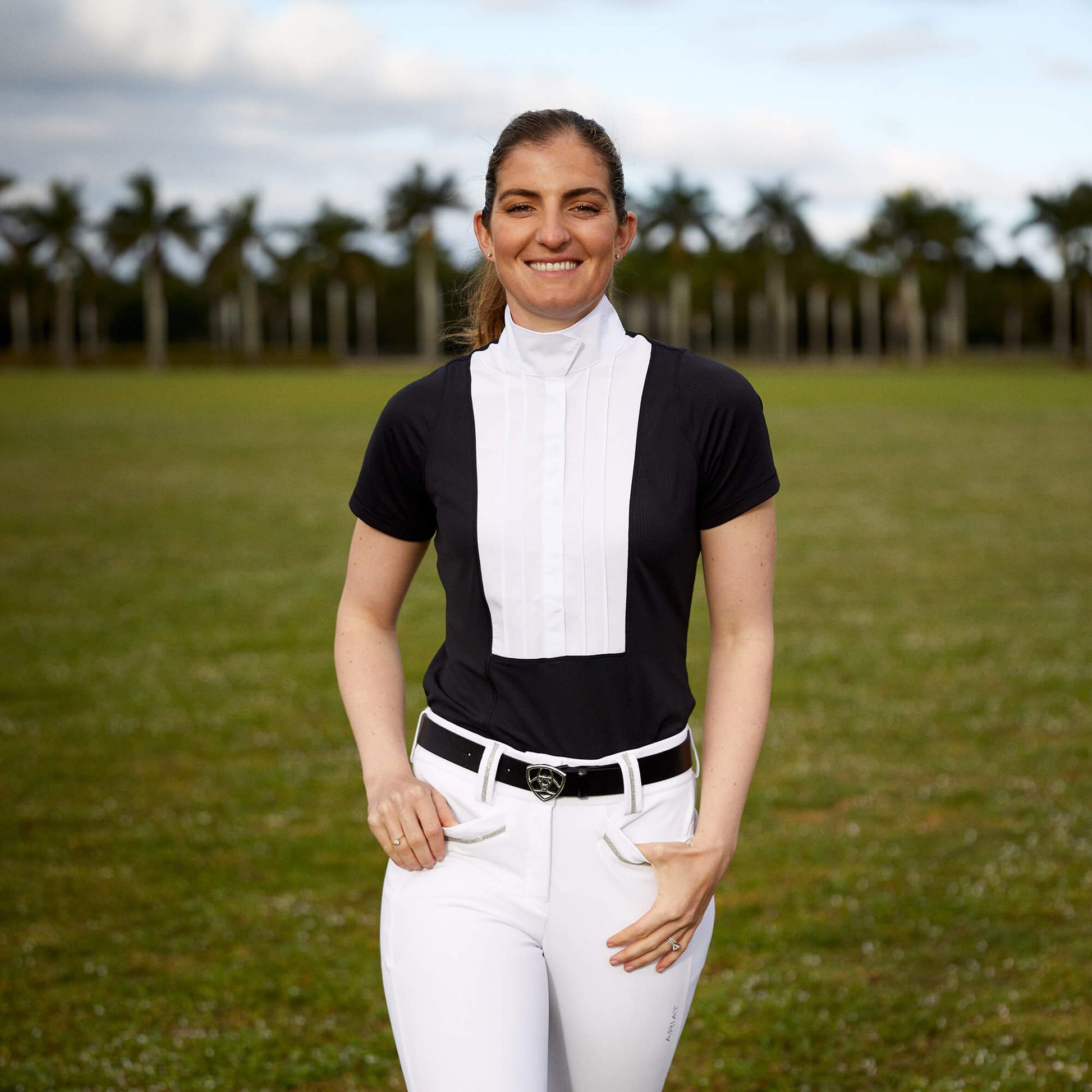 Para obtener un aspecto limpio y elegante que haga juego con tus esfuerzos en el ring, hemos creado la Camisa de Exhibición Luxe. Un diseño elegante tipo jacquard y un pechero de popelina se combinan con nuestra tela técnica para crear una camisa de alto rendimiento que realza tu estilo ecuestre.