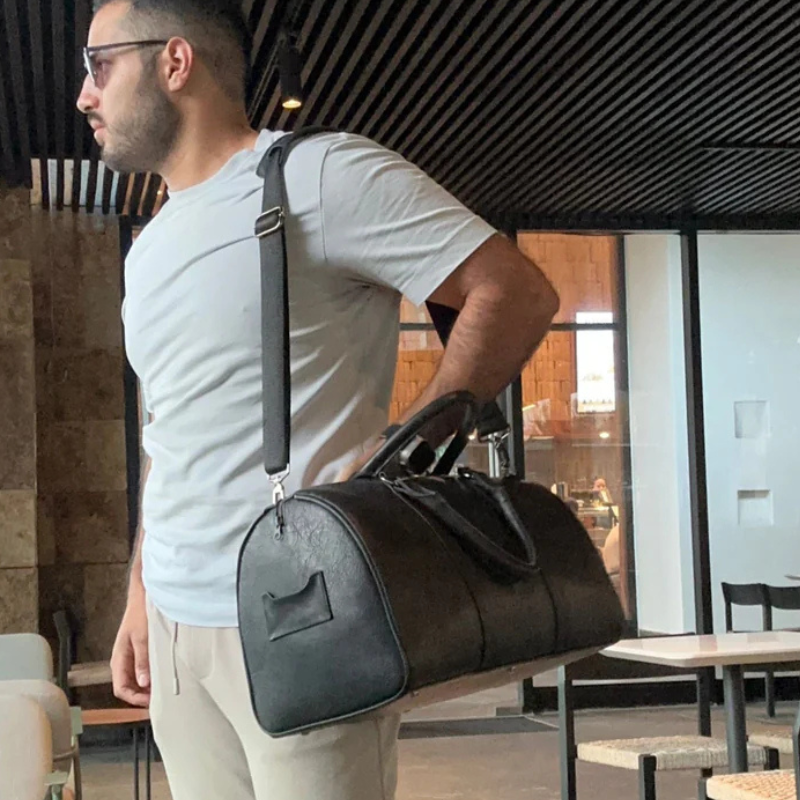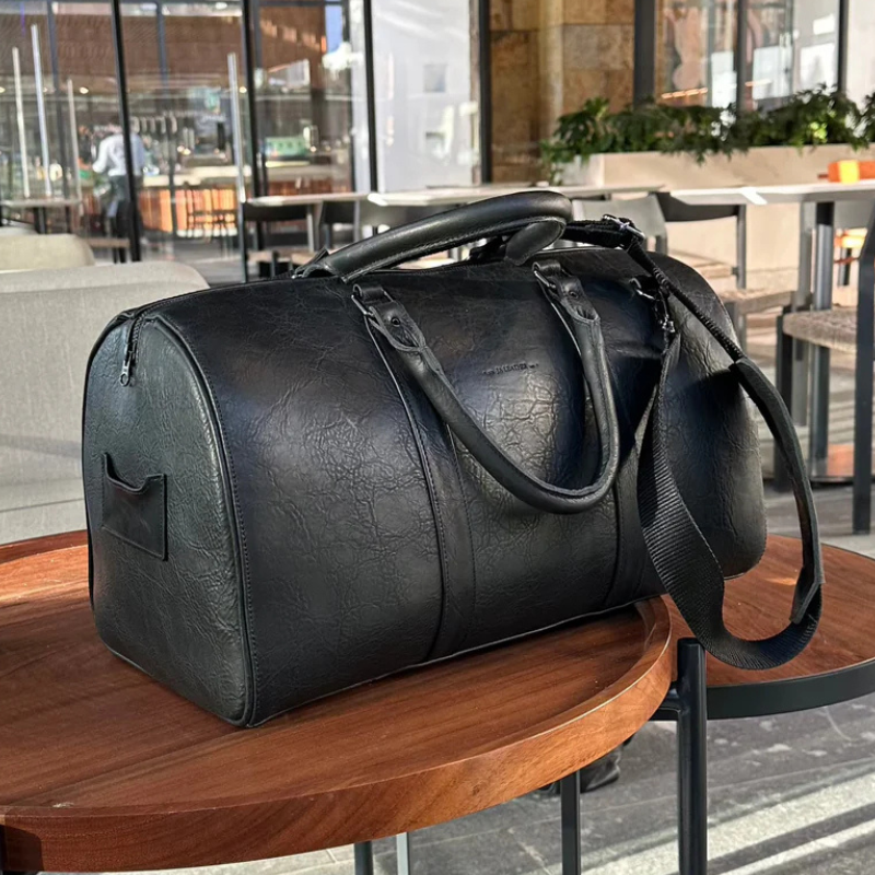 Maleta de Mano Travel Bag B002 Bisonte de Cuero Genuino Negro