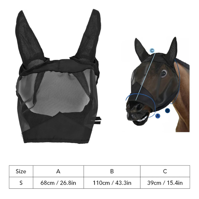 La Mascara Antimoscas con Orejeras para Potro ofrece una protección efectiva contra insectos, diseñada especialmente para la delicada piel y orejas sensibles de los potros. Su ajuste cómodo y seguro permite que el potro se mantenga tranquilo, mientras mantiene alejados moscas y otros insectos molestos, contribuyendo a su bienestar y evitando irritaciones. Ideal para usar durante paseos y períodos de alta actividad insectiva.