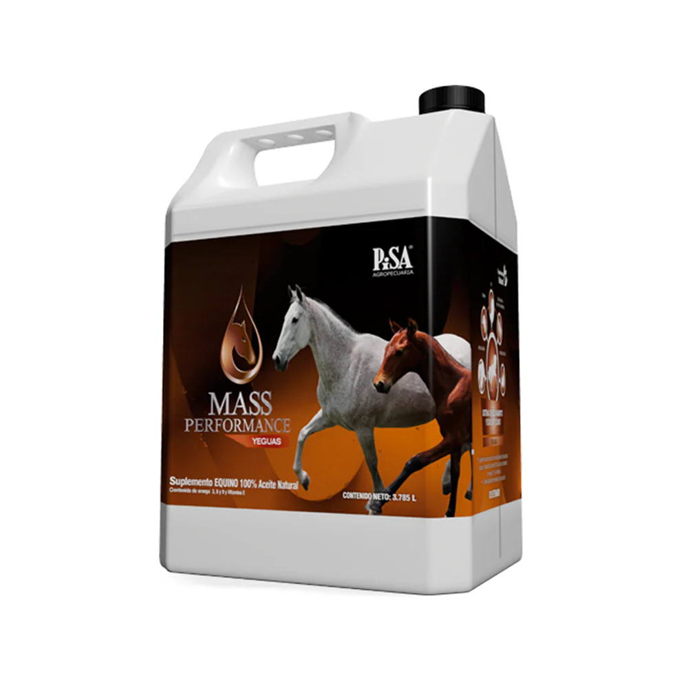 El Mass Performance Yegua es un suplemento alimenticio líquido diseñado especialmente para yeguas en etapa de empadre, gestación y lactancia. Su fórmula rica en Omega 3, 6 y 9, Vitamina E, Gamma Orizanol y Octacosanolaporta la energía y nutrientes esenciales para mejorar la condición corporal, el pelaje, la producción hormonal y la resistencia física. Su presentación en aceite contribuye a lubricar el tracto gastrointestinal, favoreciendo la digestión y reduciendo el riesgo de cólicos o úlceras gástricas.