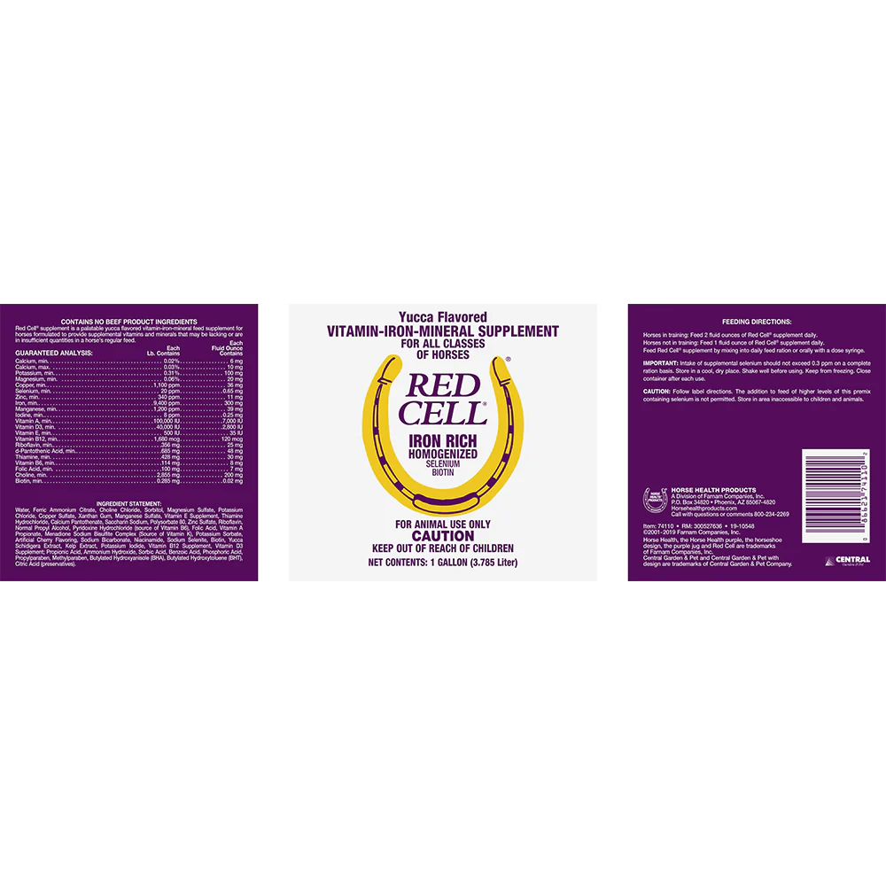 El RED CELL Galón 3.785 es un suplemento líquido formulado con vitaminas, hierro y minerales esenciales para la salud y rendimiento de las células rojas en caballos de alto rendimiento. Con 300 mg de hierro por onza, esta fórmula está diseñada para mejorar la oxigenación y la recuperación muscular de los caballos durante y después del ejercicio, apoyando sus demandas normales de salud, energía y rendimiento. La inclusión de vitaminas del complejo B (B2, B6, B9, B12) y vitamina K3 promueve un sistema inmunológico fuerte y ayuda a maximizar la funcionalidad muscular. Además, su sabor a yuca lo hace altamente palatable para los caballos, garantizando su fácil aceptación. RED CELL es la elección de entrenadores, jinetes y veterinarios a nivel mundial, y no contiene productos derivados de carne de res.