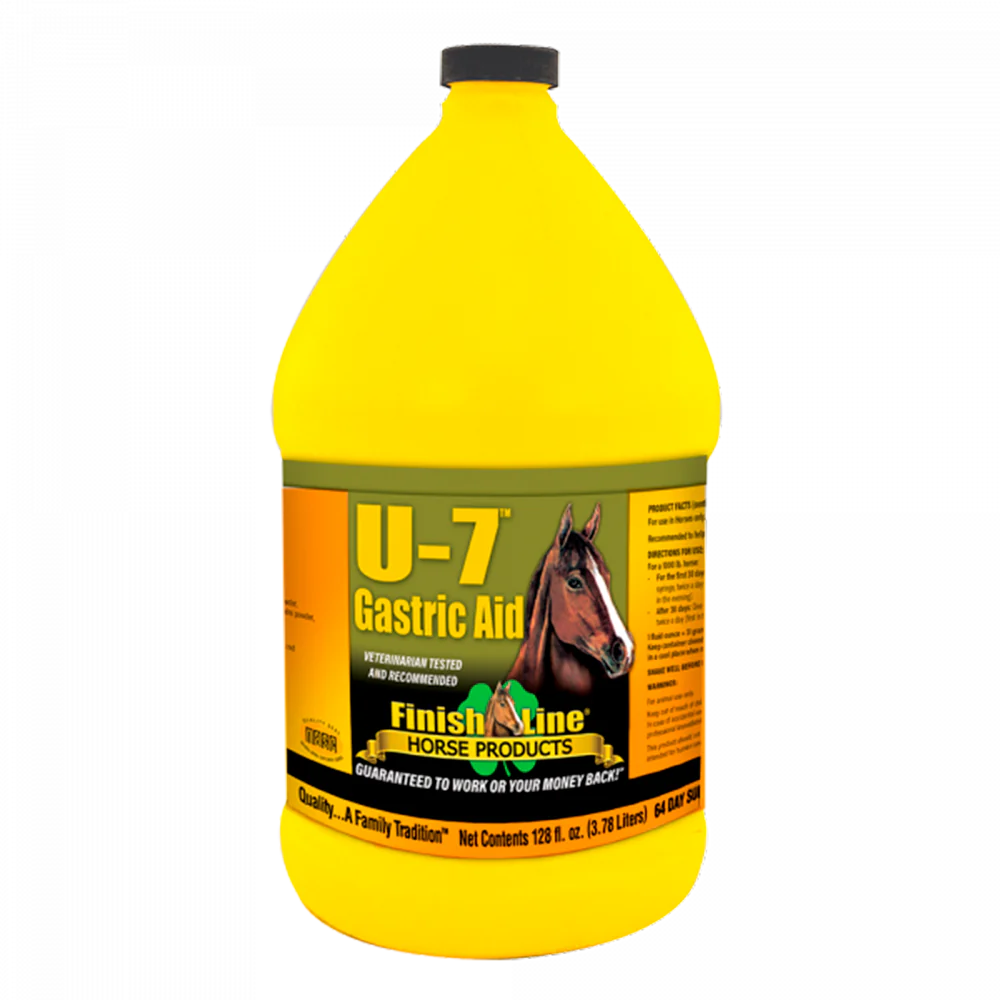 U-7™ Gastric Aid Líquido es un suplemento digestivo para caballos formulado para brindar un apoyo completo y natural al sistema gastrointestinal. Su combinación de ingredientes activos naturales como la pectina de manzana, levadura de cerveza y extracto de semilla de uva, trabaja en conjunto para mantener la salud tanto del intestino anterior como del intestino grueso.