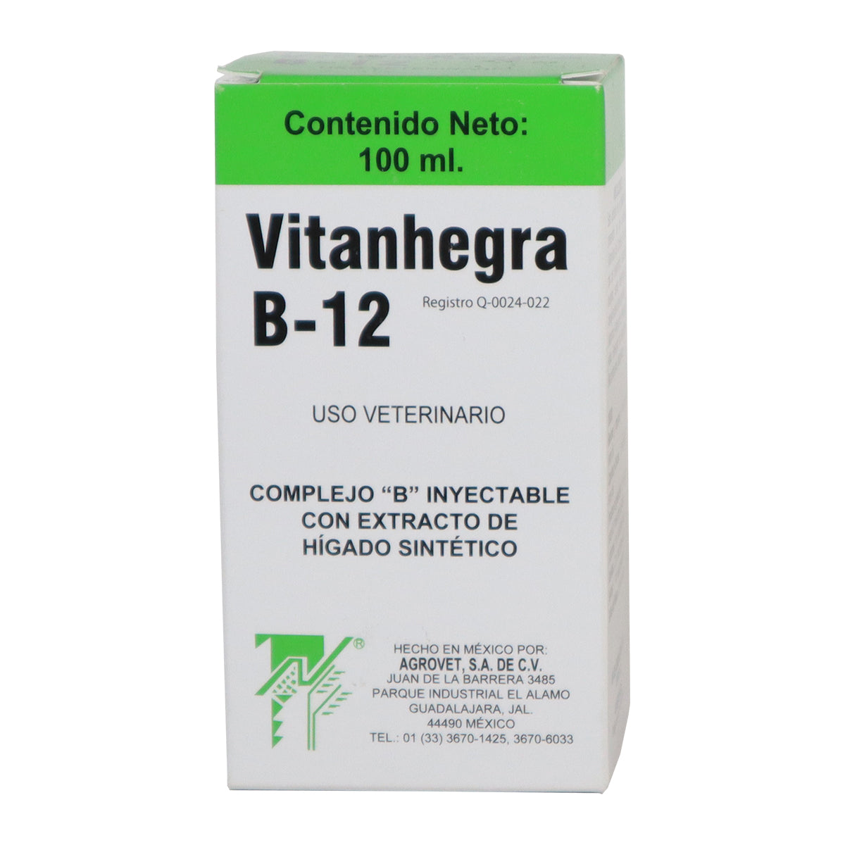 Vitanhegra B-12 Inyectable 100 ml es un complejo vitamínico B diseñado para animales con agotamiento severo, así como en estados pre y postoperatorios. Es especialmente beneficioso para hembras preñadas, recién paridas o lactando. Este producto es fundamental para el correcto funcionamiento del sistema nervioso y la acción muscular, además de actuar como un estimulante del apetito en animales convalecientes o agotados.